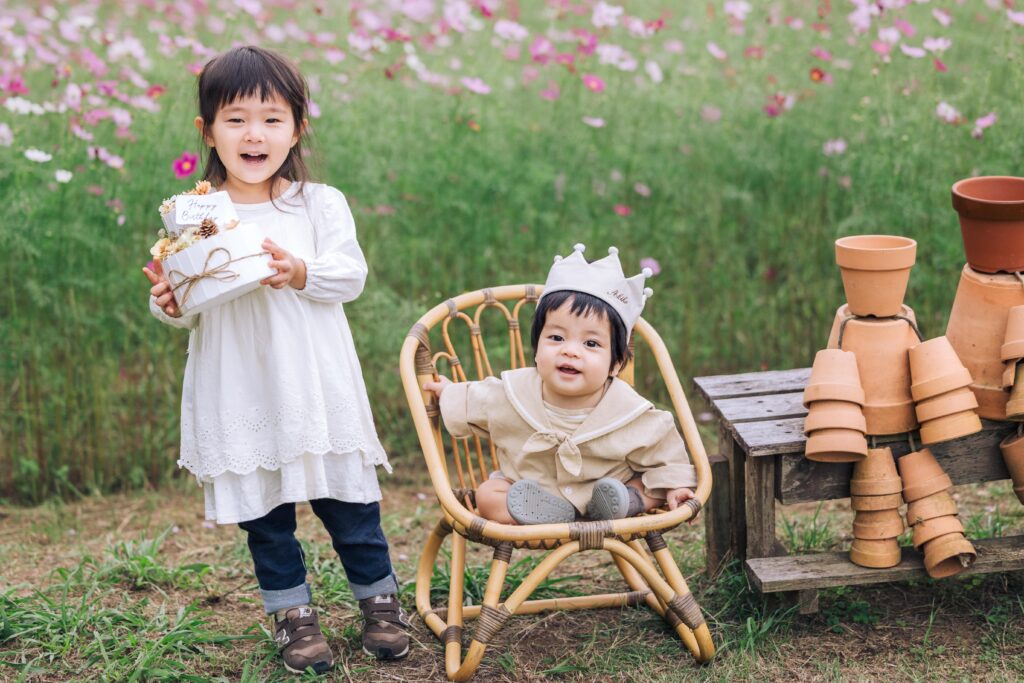 初めてお会いした時はまだお姉ちゃんが抱っこや椅子に座ってでしか撮影ができませんでしたが、今では弟くんも産まれてすっかりお姉さんになっていました。